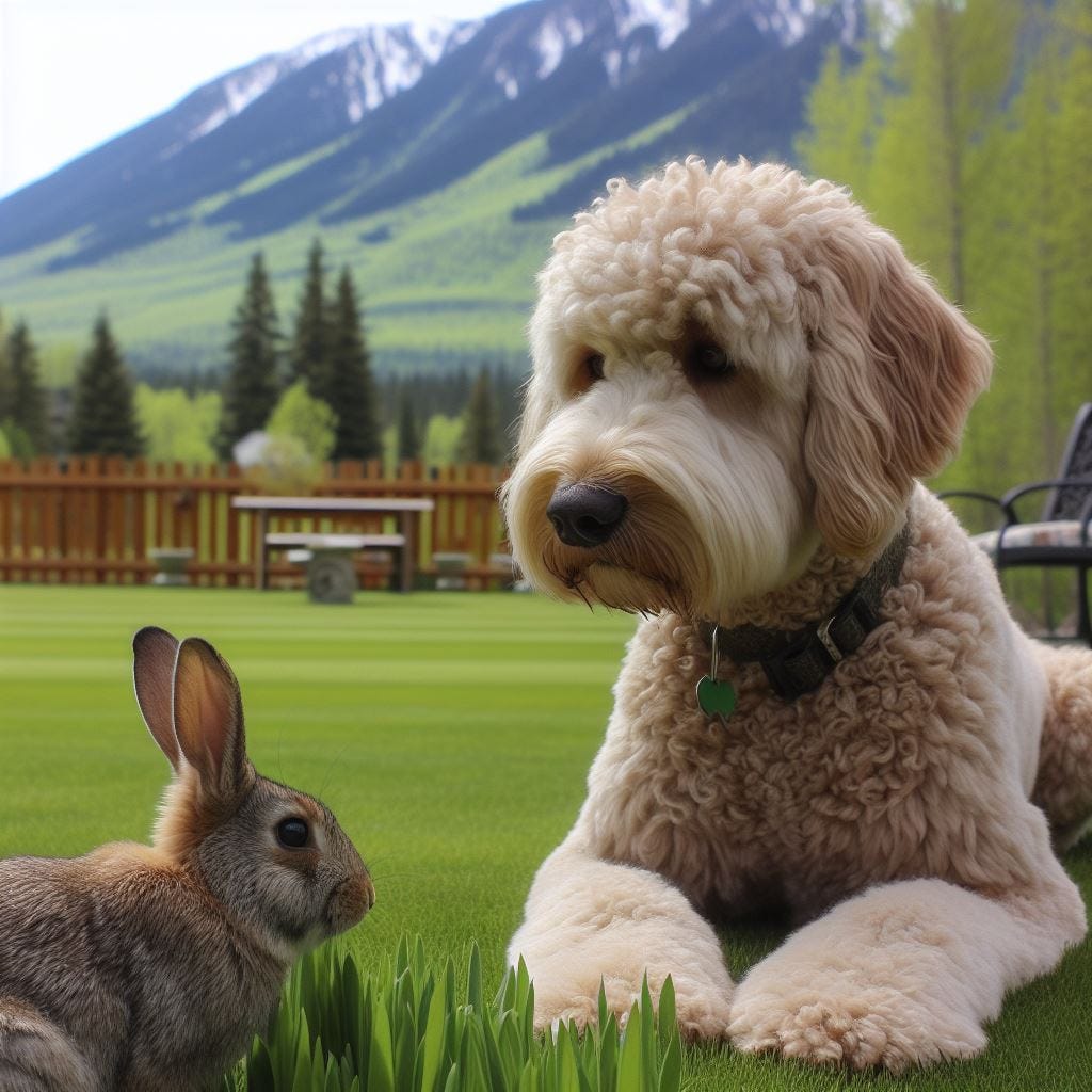 Luna, with her ample, exuberant GoldenDoodle frame, carried the weight of loyalty as effortlessly as she did her 75 pounds. Towering at a notable 25 inches, hers was a stature less daunting than Wahya’s, yet no less significant in heart or spirit. She stood, not merely as a guardian but as a cherished companion to John and Lillibeth—a partnership that mirrored the essence of a devoted canine marriage. Her connection with Wahya was a symphony of silent understanding and mutual respect, woven into the fabric of their daily interactions, each one a protector, a friend, a kindred spirit to the other, bound in an unspoken vow of solidarity.